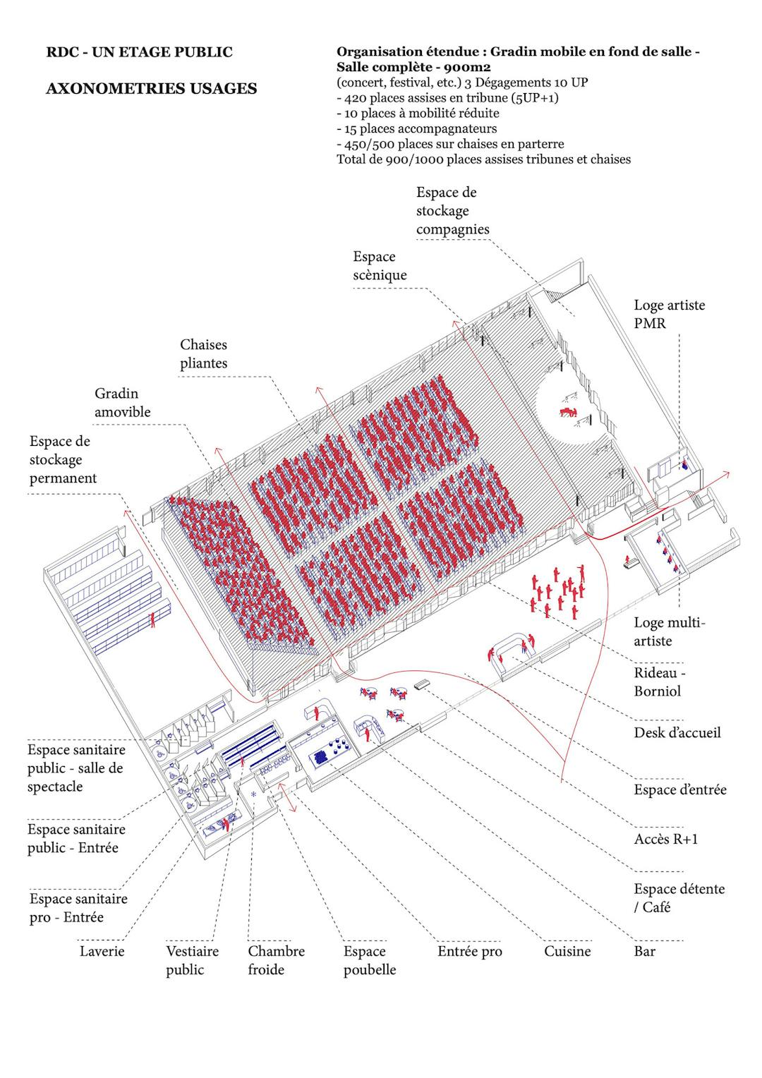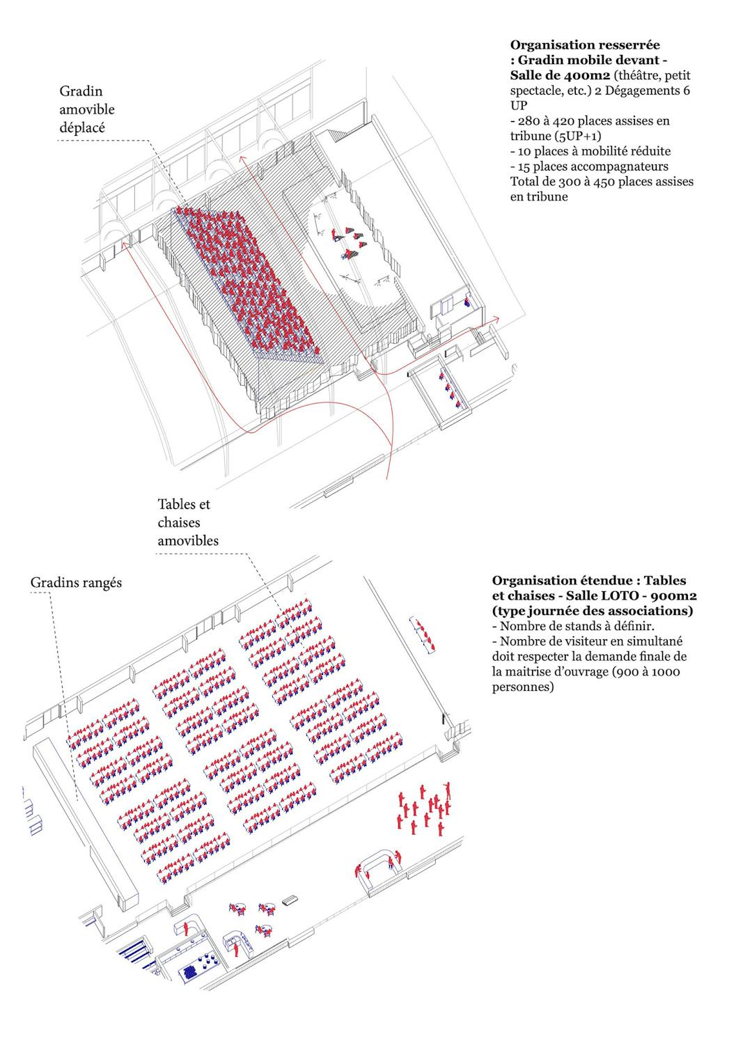 Programme : Transformation d’un ancien gymnase/salle polyvalente en un centre culturel à échelle régionale et réflexion paysagère globale sur les abords du site.