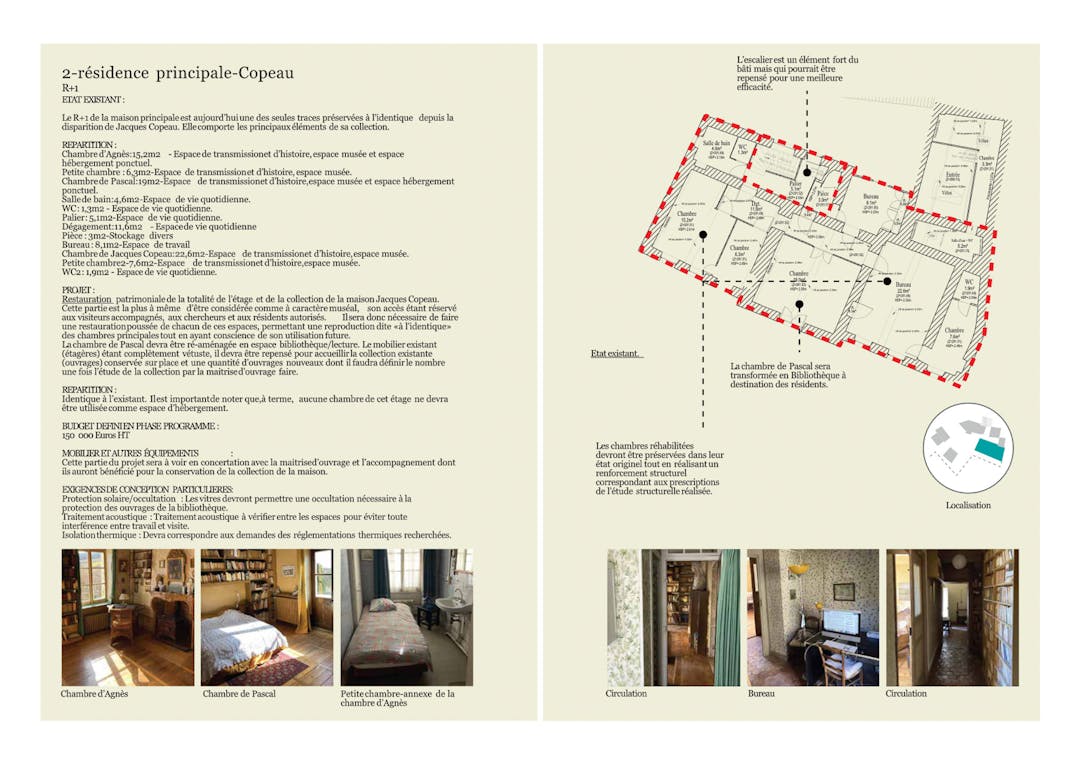 - Restaurer l’ensemble des éléments et lieux témoins de l’histoire du site de la maison Jacques Copeau sans en faire un musée mais permettant la tenue de visite de la maison.