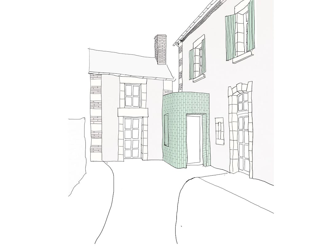 Le projet valorise également les matériaux anciens présents sur place — tomettes, planchers en chêne massif, faïences — qui seront soigneusement conservés et réemployés dans une logique de mise en valeur du patrimoine.